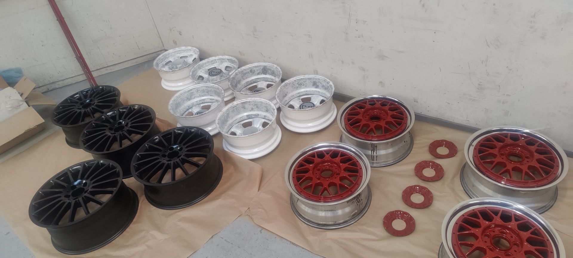 Vi starter med at afstrippe fælgene for gammel lak og snavs, så overfladen er ren og klar til behandling. Herefter bliver fælgene omhyggeligt lakeret i den farve og finish, du ønsker – fx mat, blank, metallic eller specialfarver.